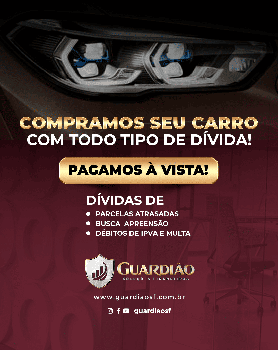 A Guardiã̃o Soluções Financeiras é especialista em consultoria financeira, ajudando pessoas e empresas a limpar o nome, recuperar o crédito e restaurar o score com rapidez e segurança. Atuamos na regularização de CPF e CNPJ, blindagem de nome, negociações de dívidas e compra de veículos com restrição, sempre com transparência e soluções personalizadas para cada cliente.
