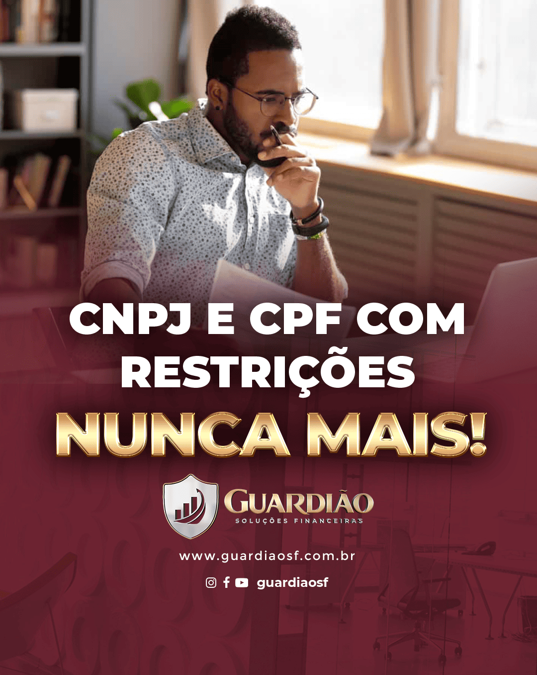 A Guardiã̃o Soluções Financeiras é a escolha certa para quem quer limpar o nome e recuperar o crédito com rapidez e segurança. Atuamos com soluções completas como restauração de score, blindagem de nome e regularização no Bacen, sempre com atendimento personalizado e transparente. Nosso objetivo vai além de limpar seu nome: queremos devolver sua credibilidade, facilitar aprovações de crédito e trazer de volta a tranquilidade financeira que você merece.